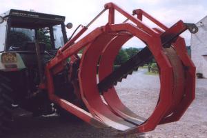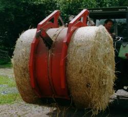 cut 1.2m x 1.2m round bales into neat slices for use by his "mainly equine"